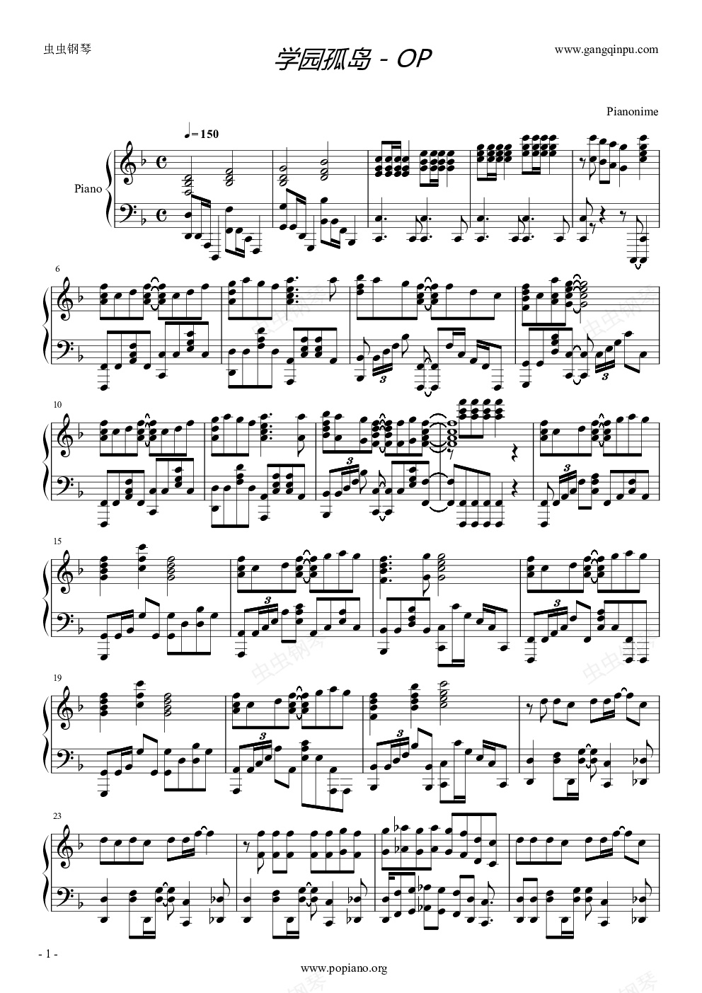 钢琴谱:学园孤岛-OP