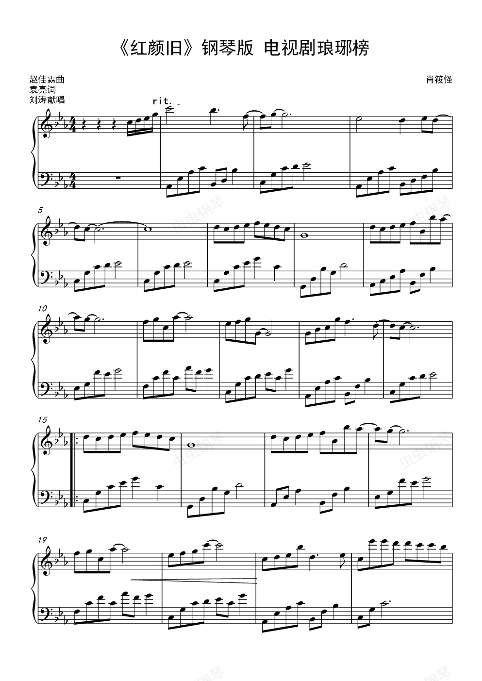 钢琴谱:《红颜旧》钢琴版 电视剧琅琊榜