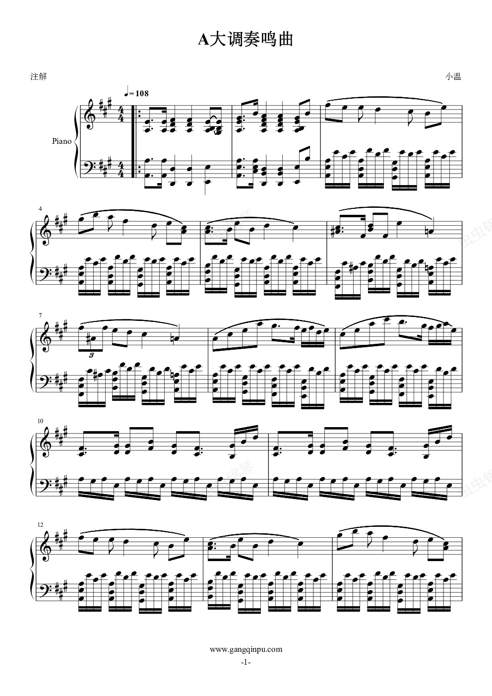 钢琴谱:A大调奏鸣曲