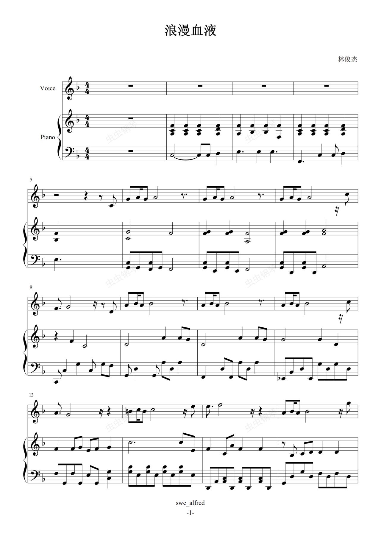 钢琴谱:浪漫血液-伴奏