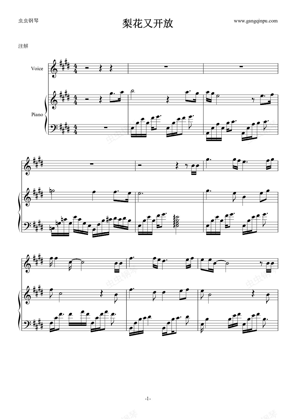 钢琴谱:梨花又开放-我是歌手版-伴奏