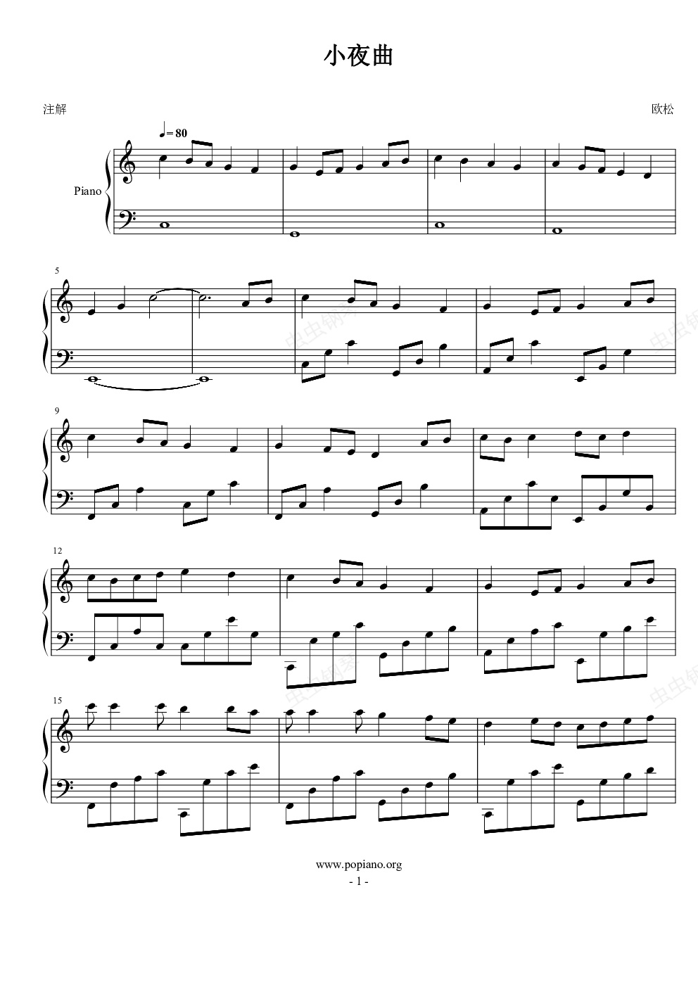 钢琴谱:小夜曲