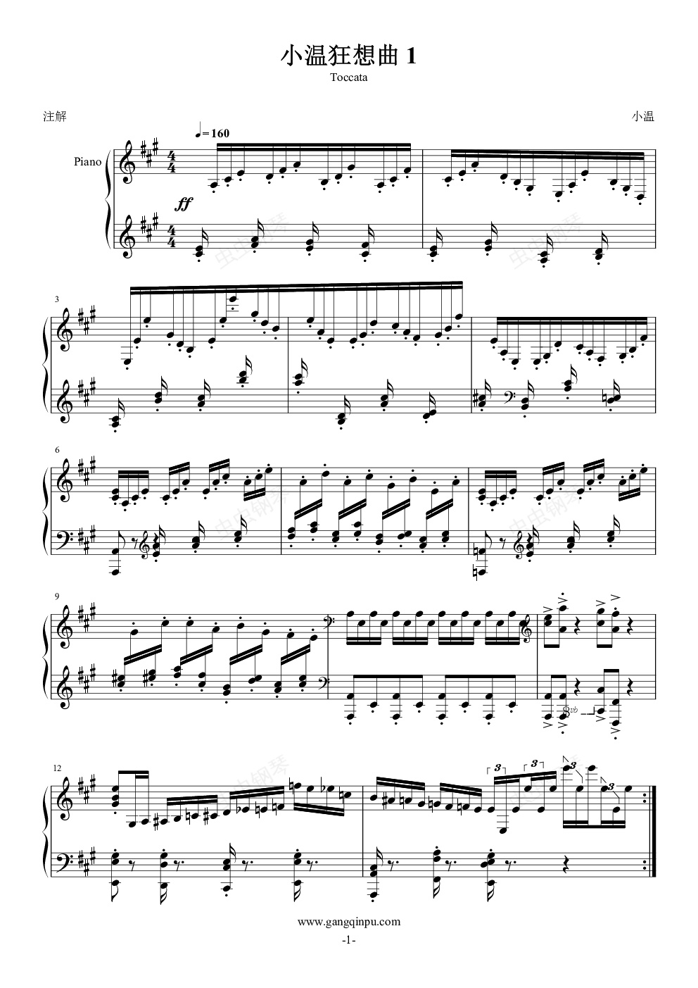钢琴谱:小温狂想曲 1