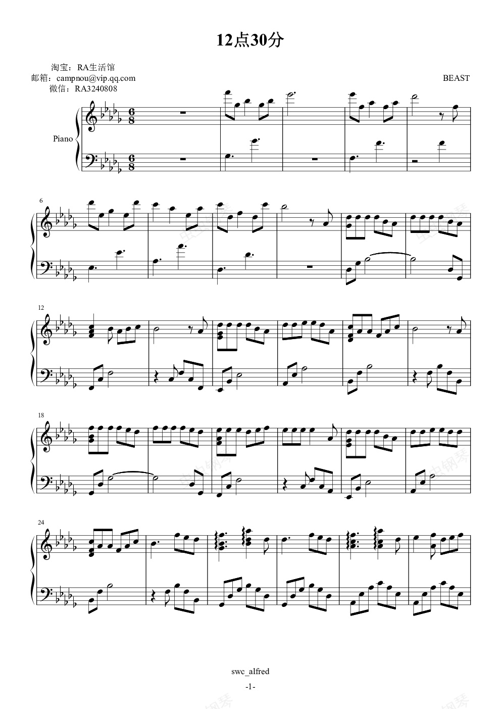 钢琴谱:12点30分