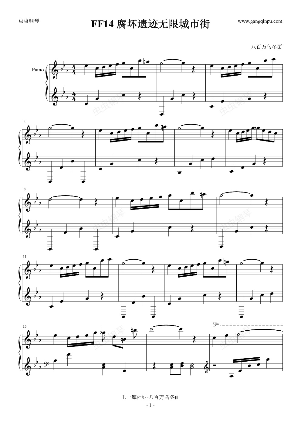 钢琴谱:FF14 腐坏遗迹无限城市街