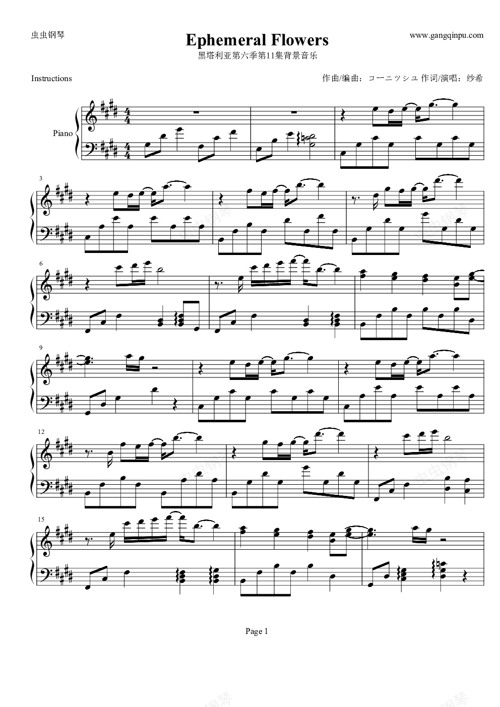 钢琴谱:Ephemeral Flowers