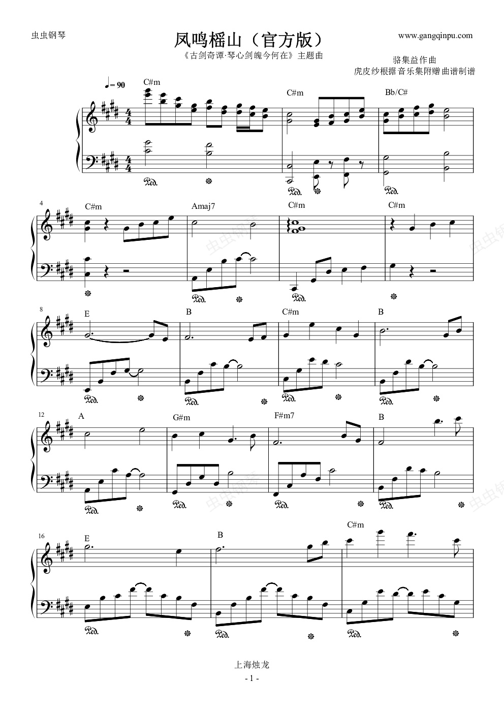 钢琴谱:古剑奇谭 凤鸣榣山(官方版)