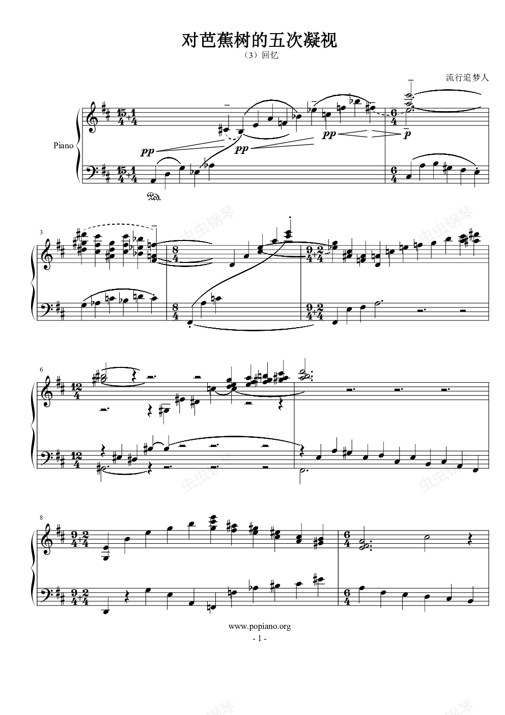 钢琴谱:对芭蕉树的五次凝视, 回忆