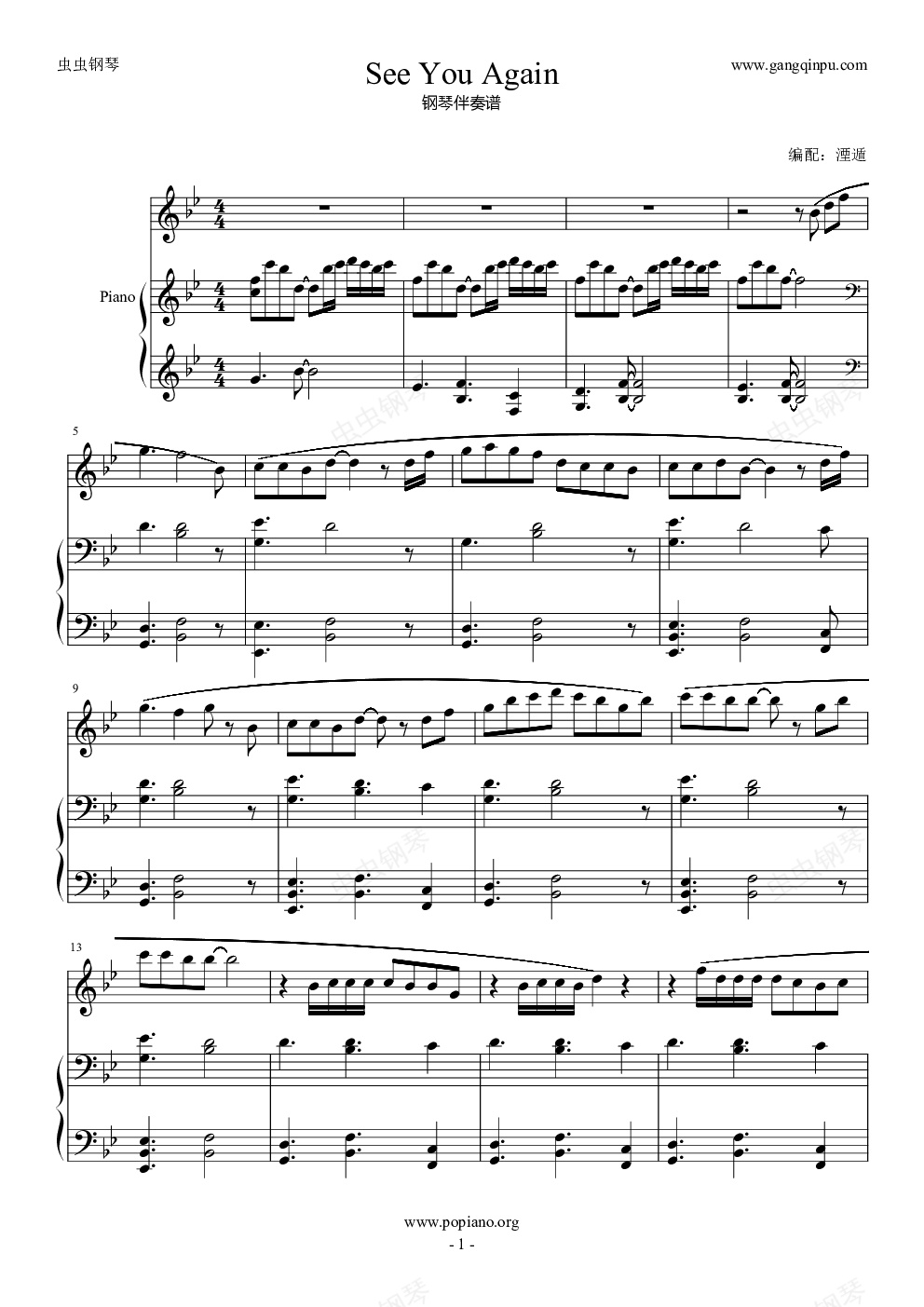 钢琴谱:See You Again(钢琴伴奏谱)