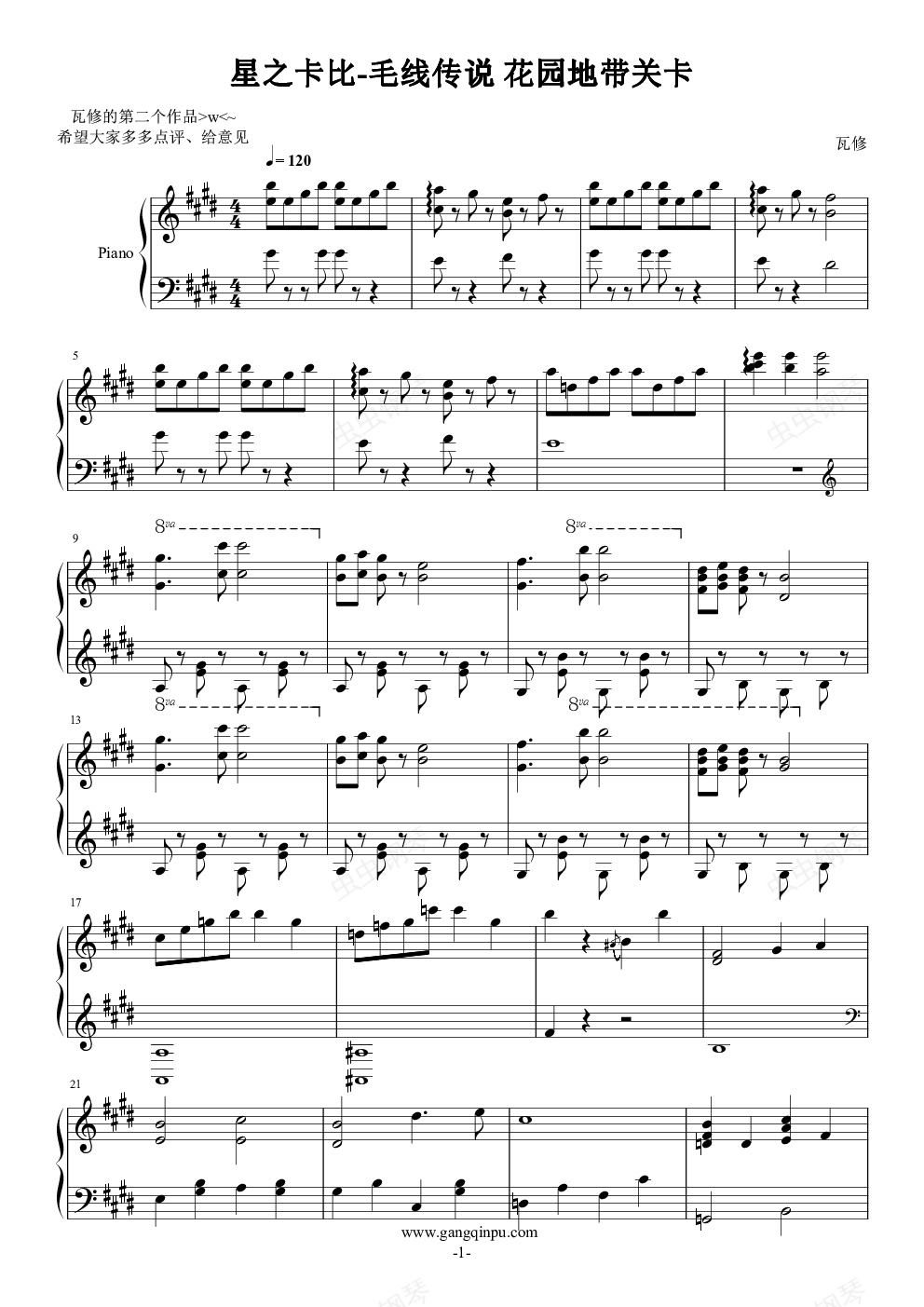 钢琴谱:星之卡比-毛线传说 花园地带关卡
