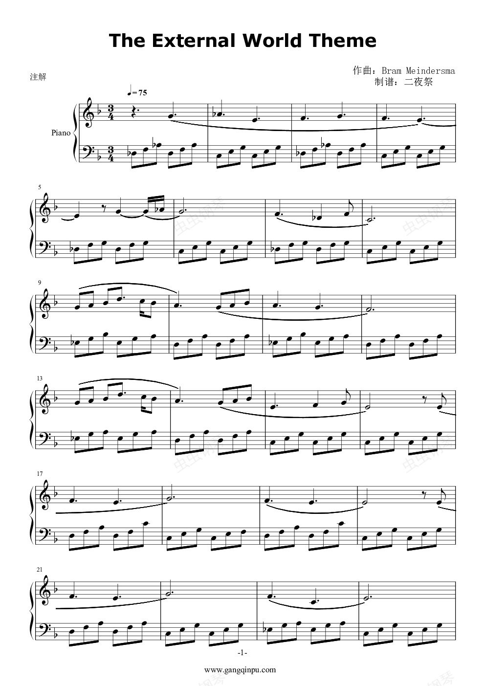 钢琴谱:【表象的世界】The External World Theme