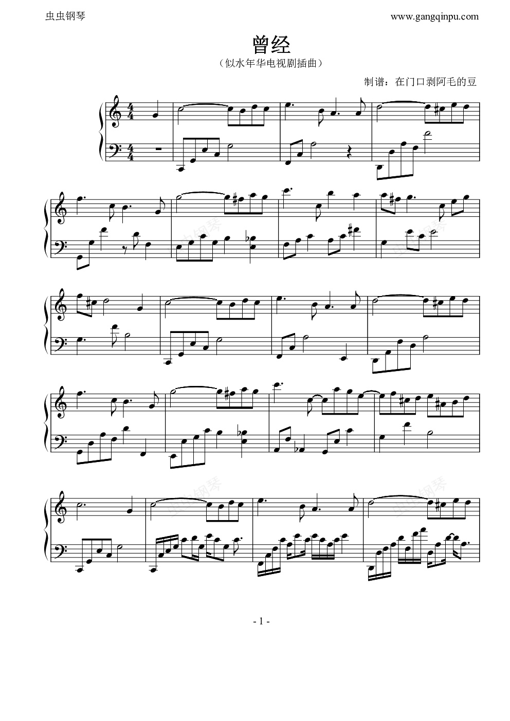 钢琴谱:曾经(电视剧《似水年华》插曲)