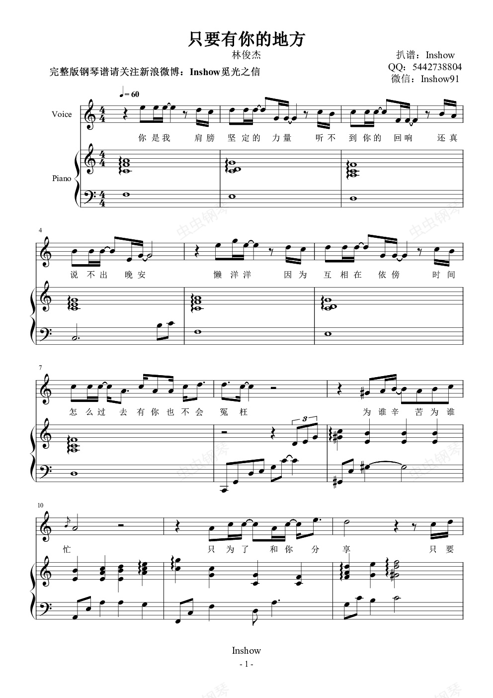 钢琴谱:只要有你的地方(弹唱谱)-林俊杰