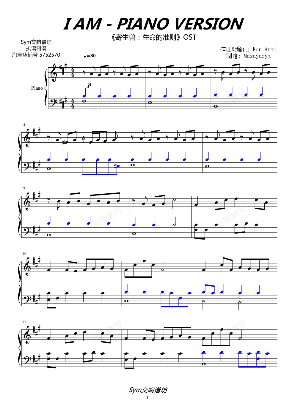 钢琴谱:【寄生兽】I AM piano version【ken arai特典版】