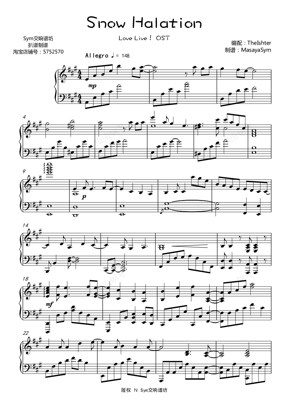 钢琴谱:【LoveLive!】Snow Halation【TheIshter】