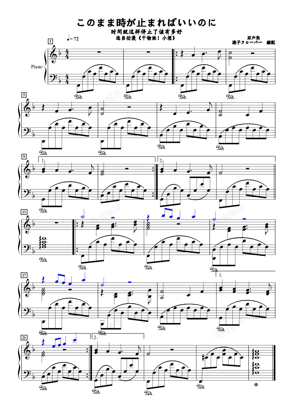 钢琴谱:このまま時が止まればいいのに