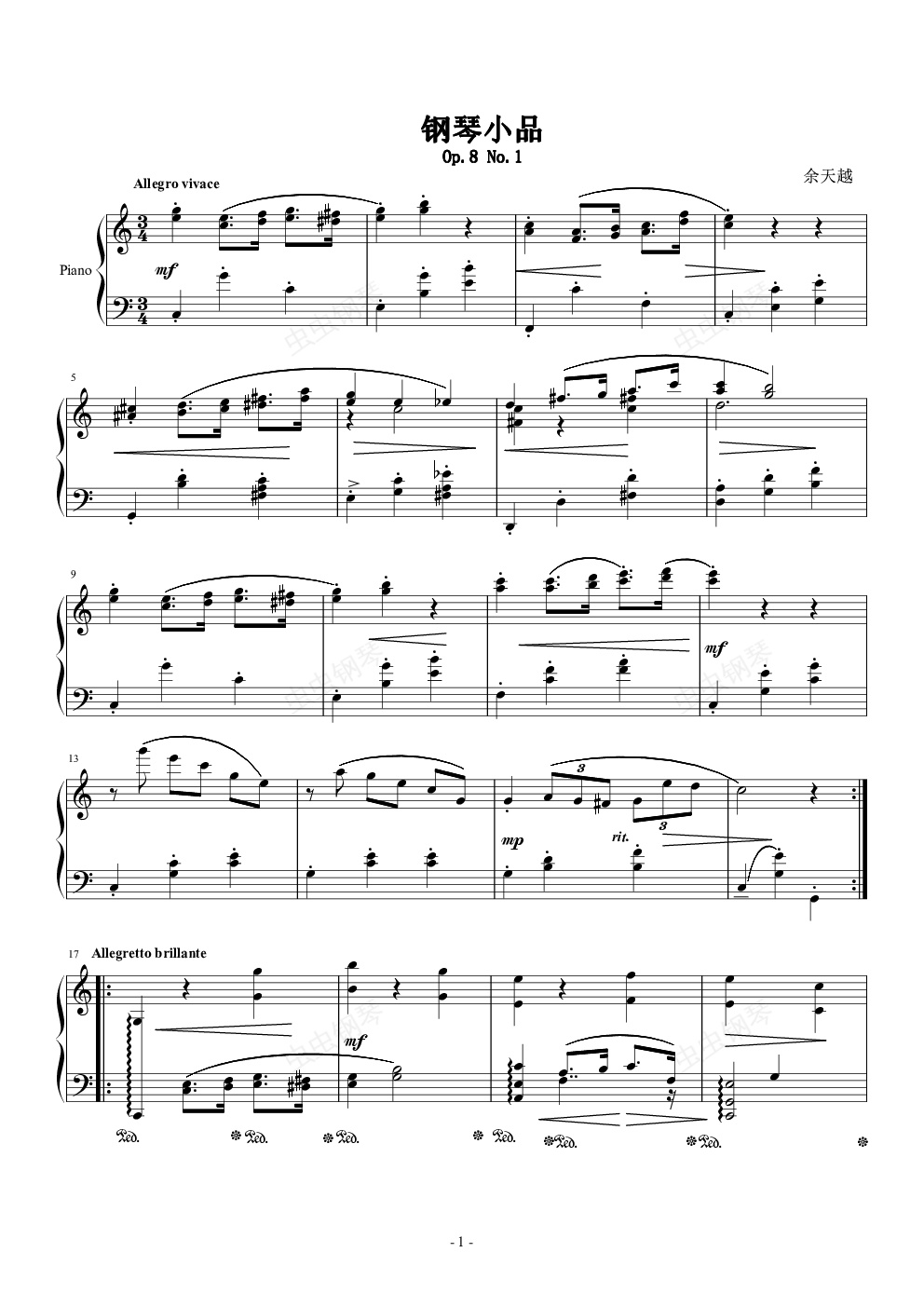 钢琴谱:钢琴小品 Op.8 No.1