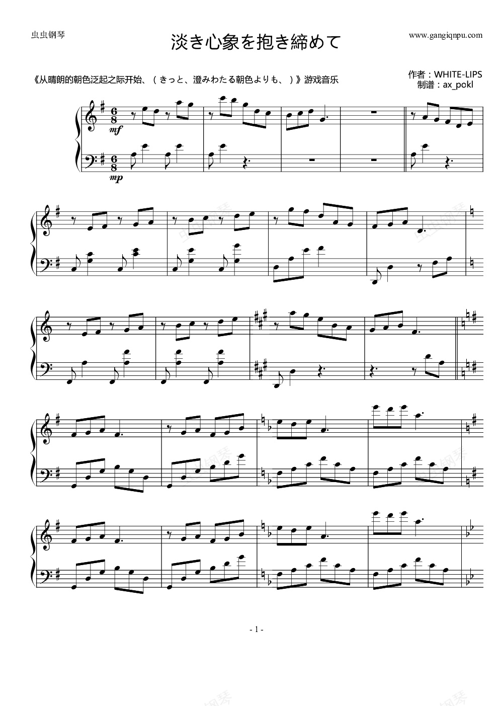 钢琴谱:淡き心象を抱き缔めて