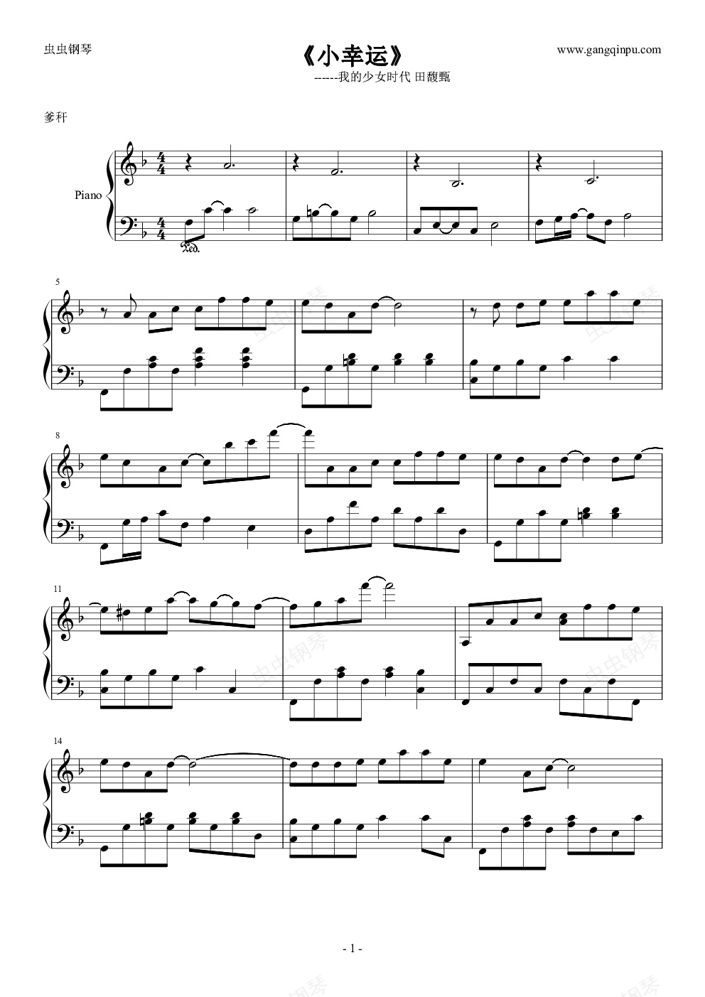 钢琴谱:《小幸运》我的少女时代 田馥甄