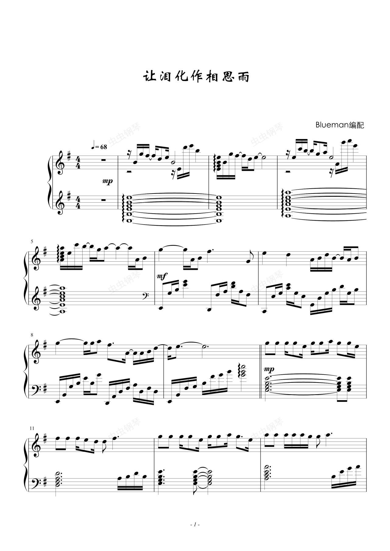钢琴谱:让泪化作相思雨