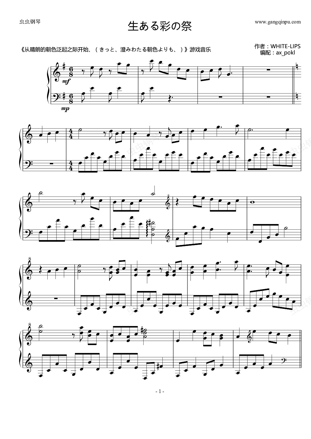 钢琴谱:淡き心象を抱き缔めて