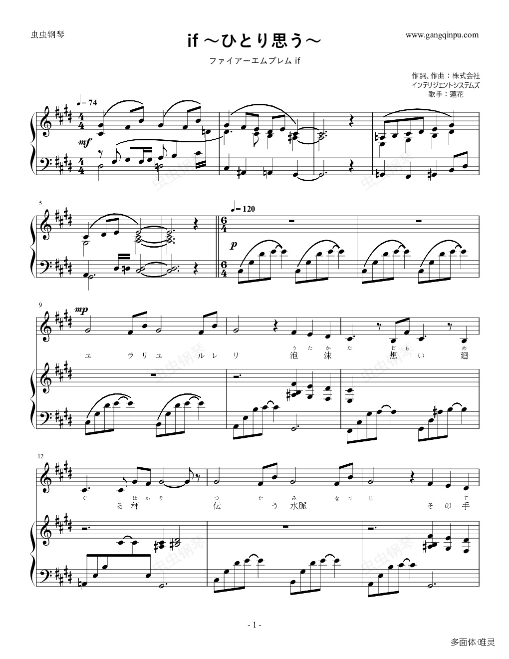if~ひとり思う~ (火焰之纹章 if 主题曲)(歌谱+钢琴伴奏)
