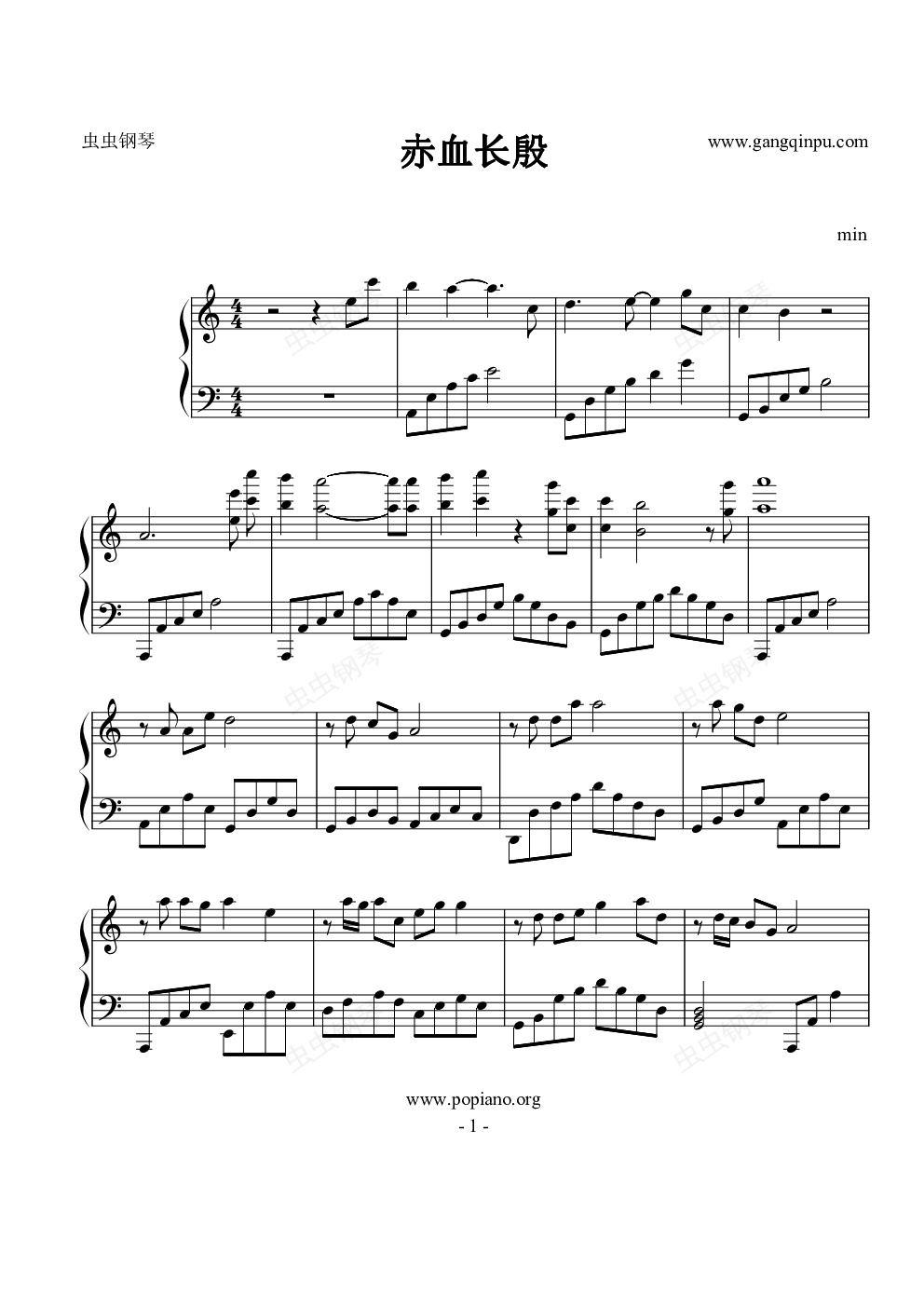 钢琴谱:赤血长殷 独奏