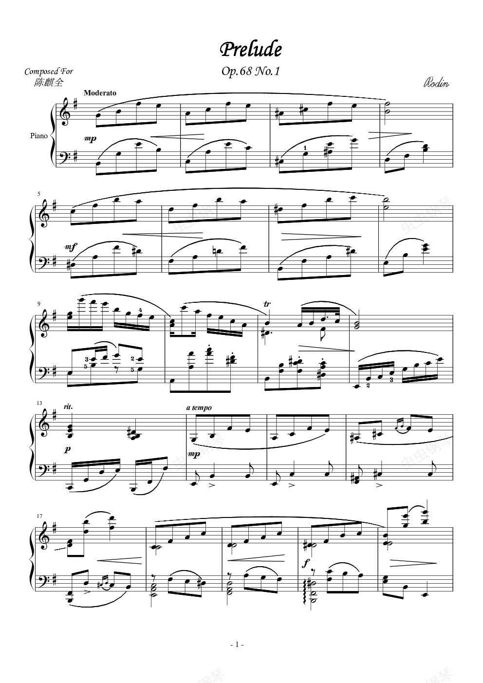 钢琴谱:e小调前奏曲 Op.68 No.1