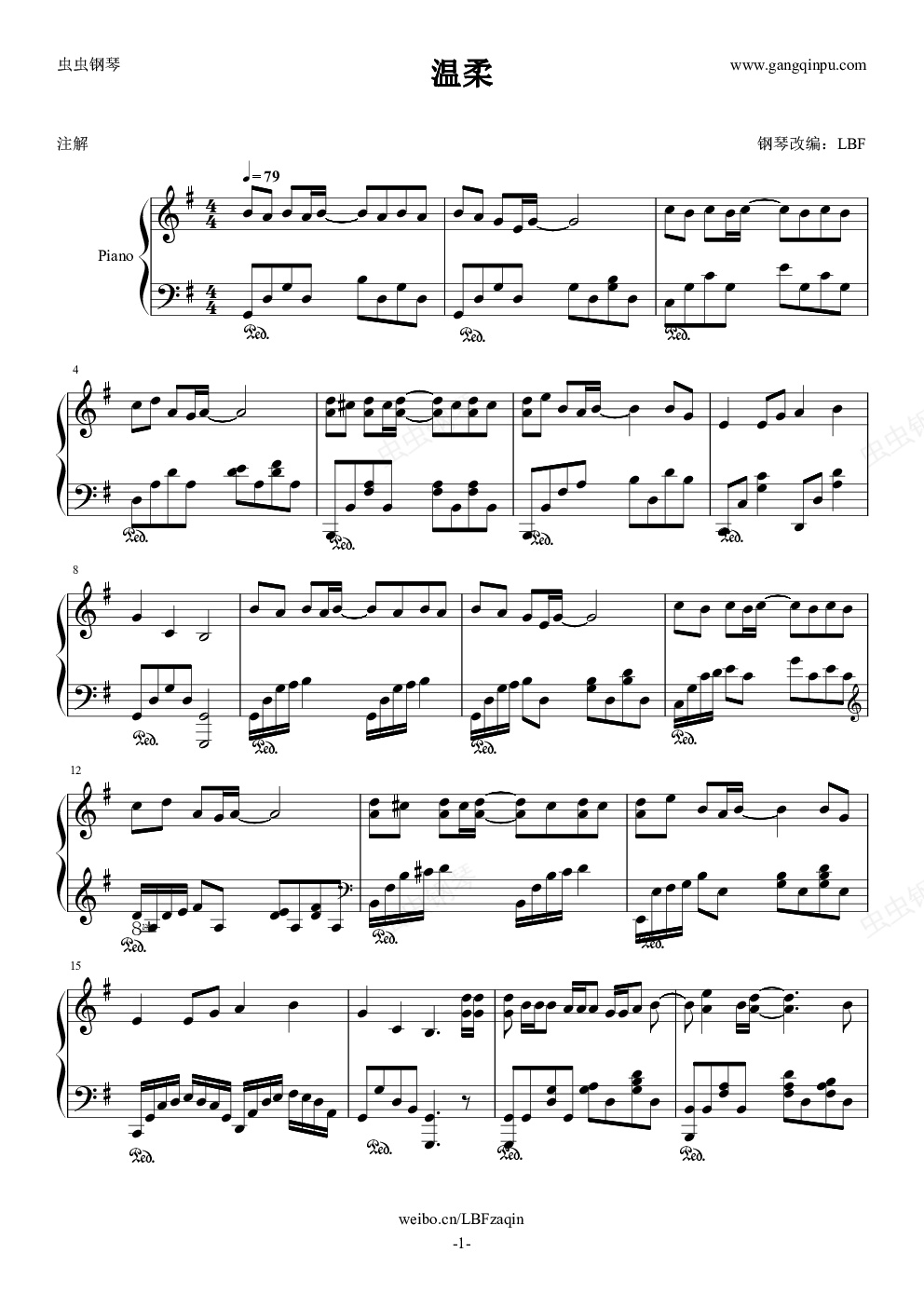 钢琴谱:【LBF】五月天—温柔