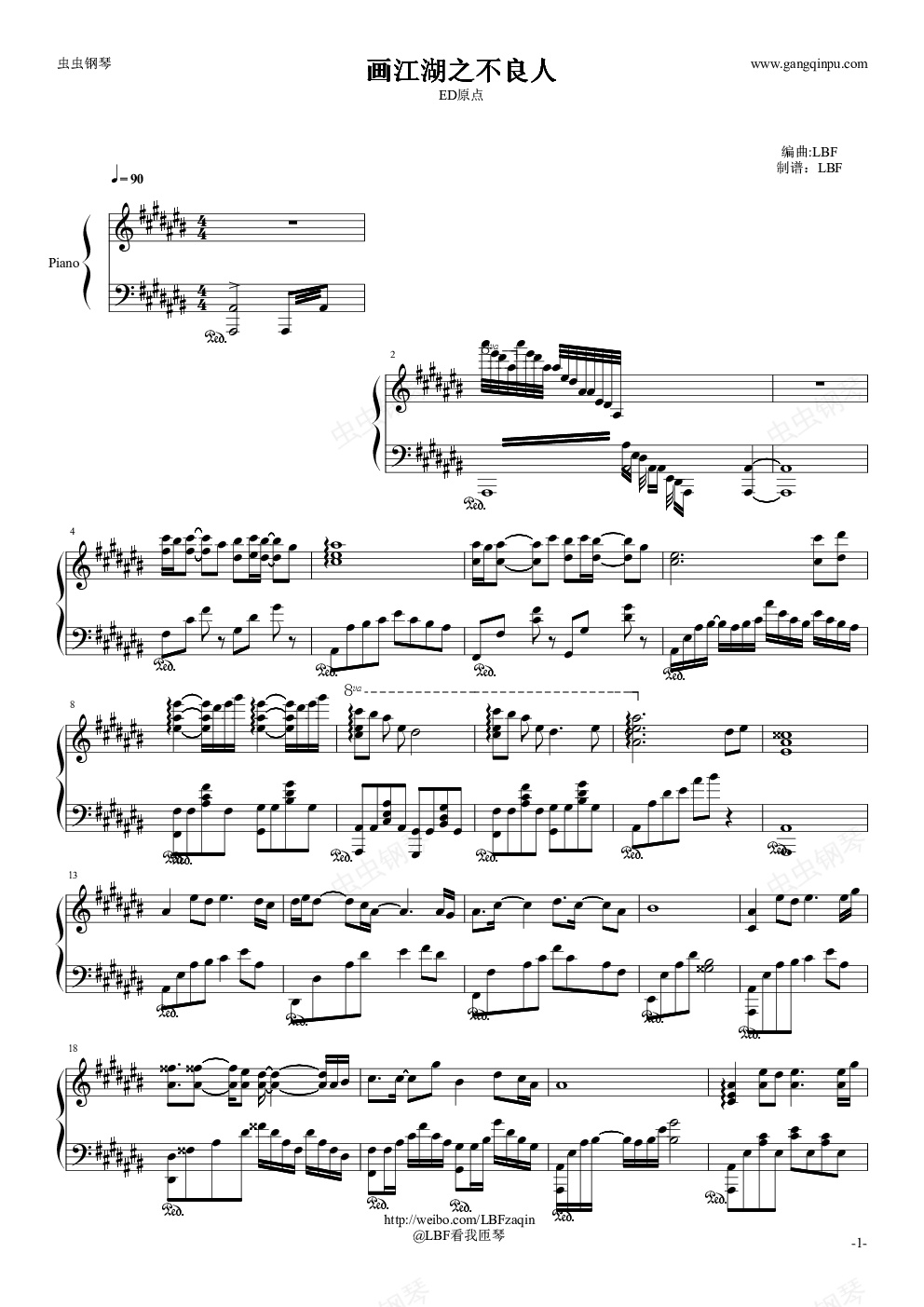 钢琴谱:【LBF】画江湖之不良人ED