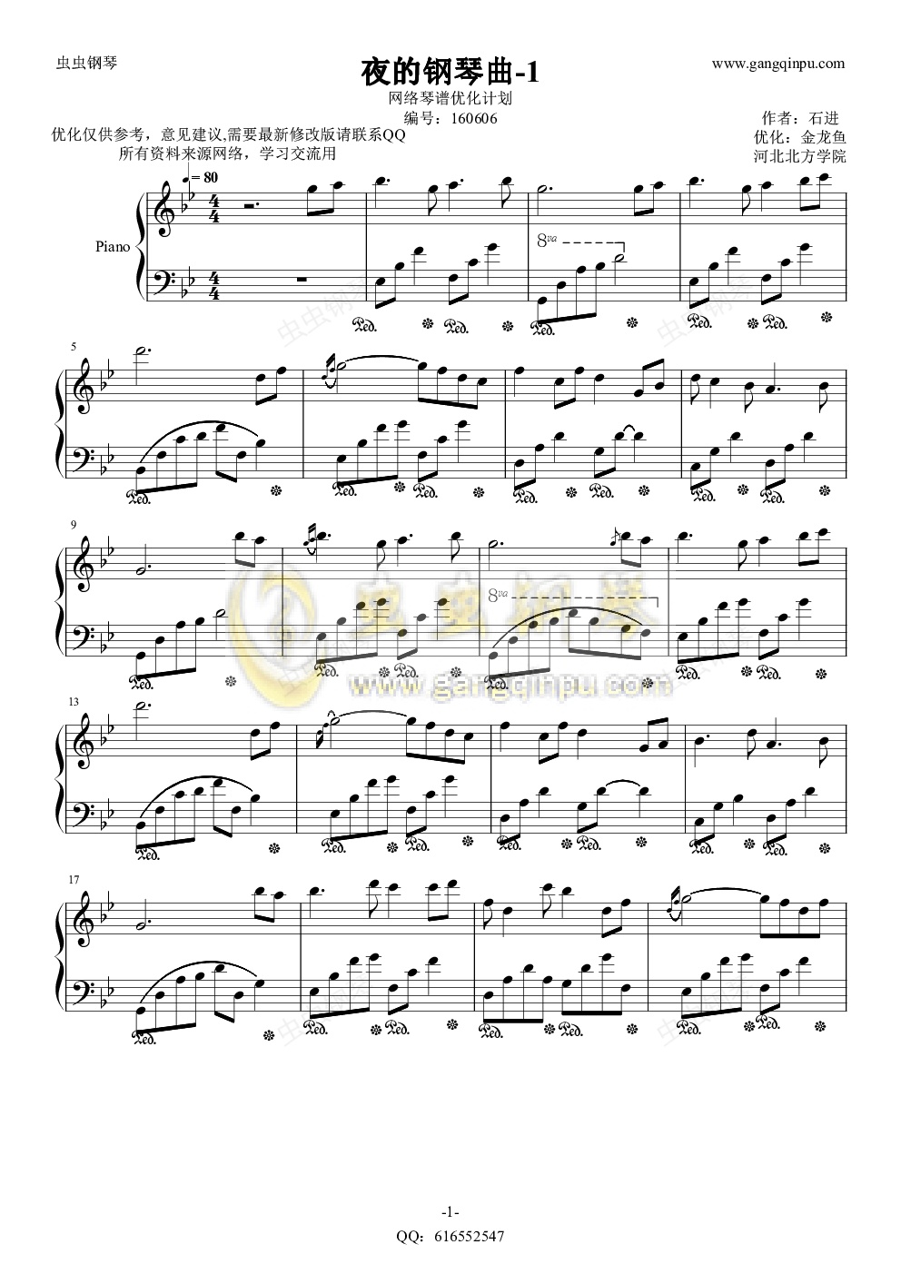 钢琴谱:夜的钢琴曲1-金龙鱼优化版160606
