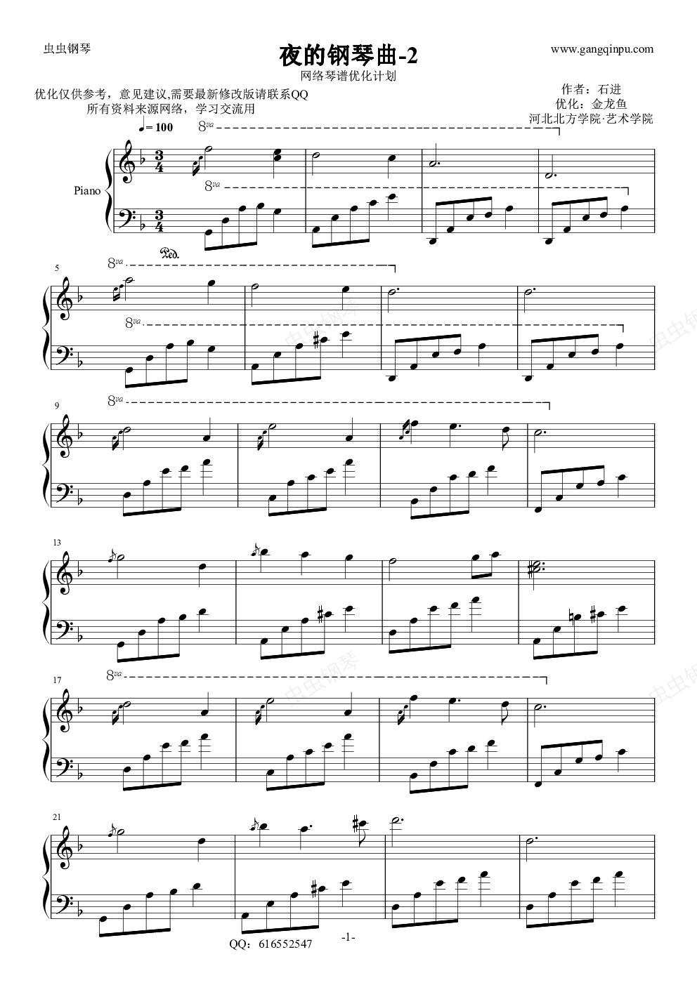 钢琴谱:夜的钢琴曲2-金龙鱼修改版