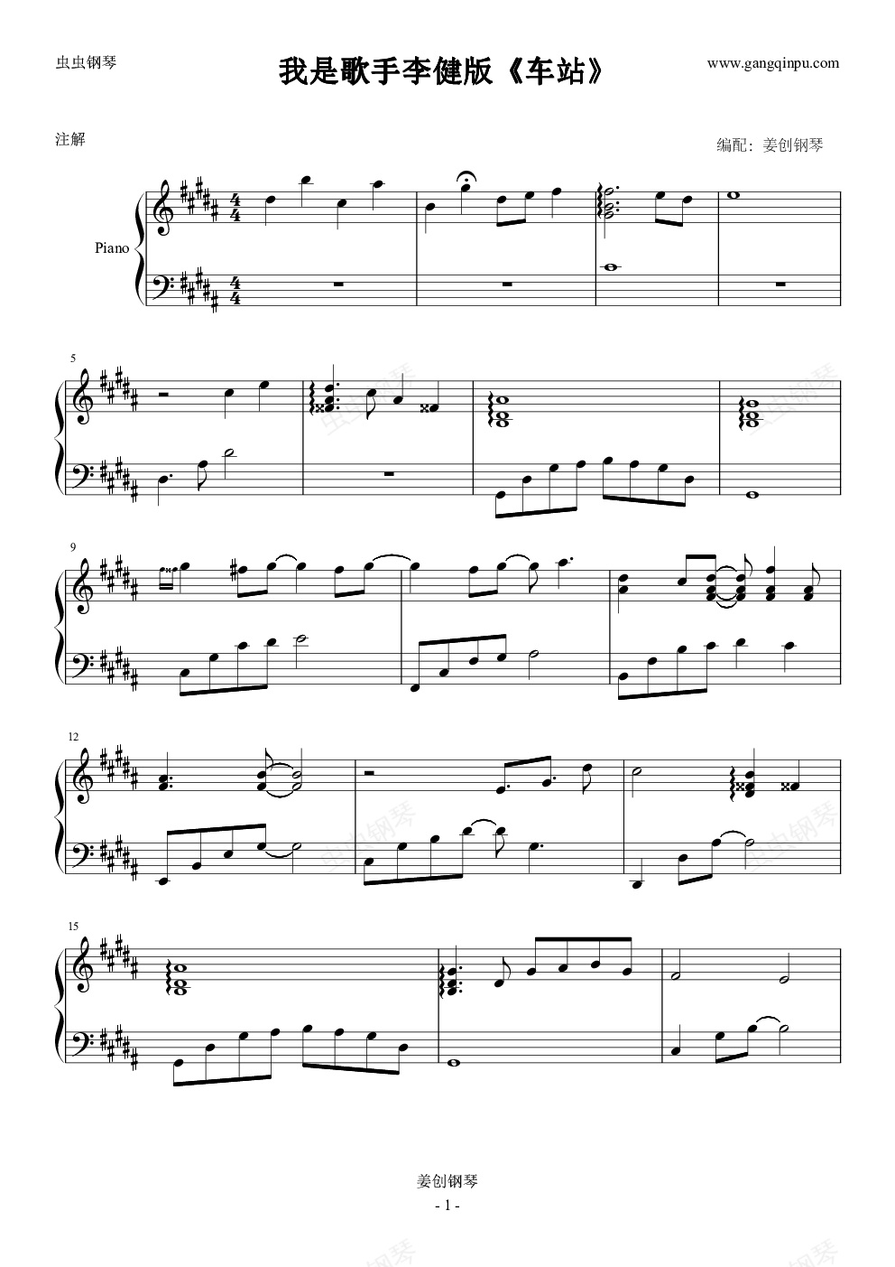钢琴谱:我是歌手李健《车站》钢琴独奏 姜创视频