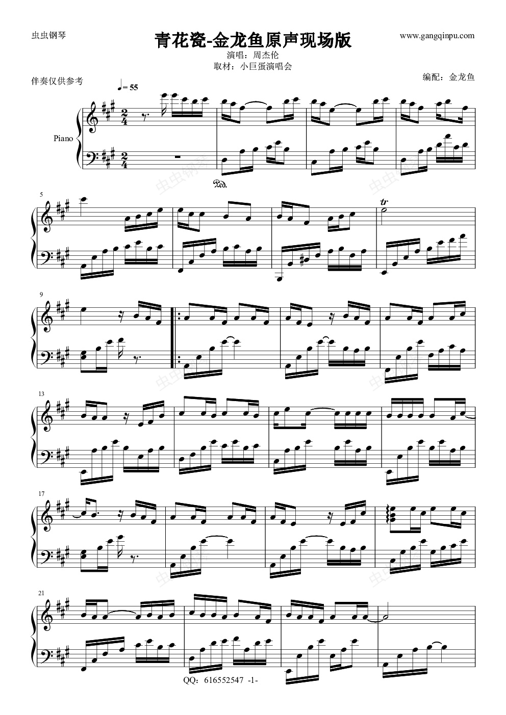 钢琴谱:青花瓷-现场原声(金龙鱼)