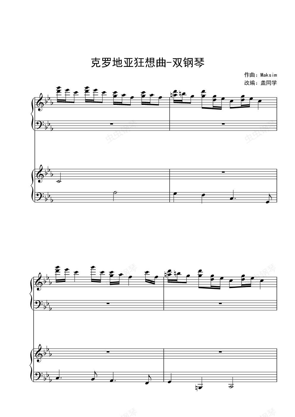 钢琴谱:克罗地亚狂想曲-双钢琴