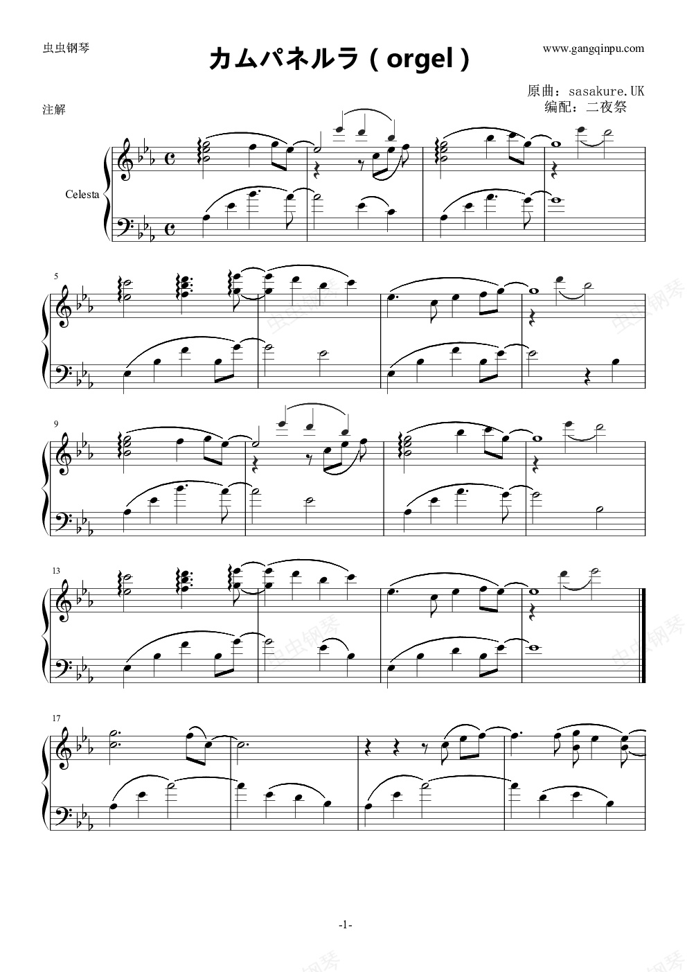 钢琴谱:【GUMI】カムパネルラ(八音盒)