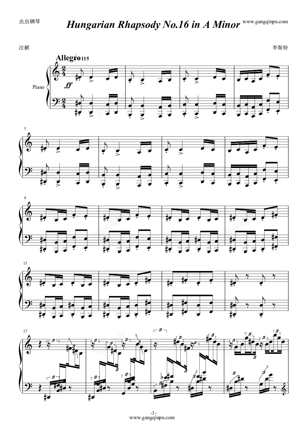 钢琴谱:李斯特-匈牙利狂想曲第16号