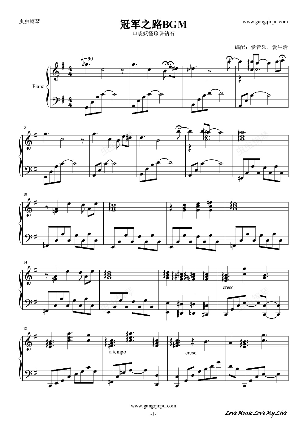 钢琴谱:【口袋妖怪BGM】冠军之路