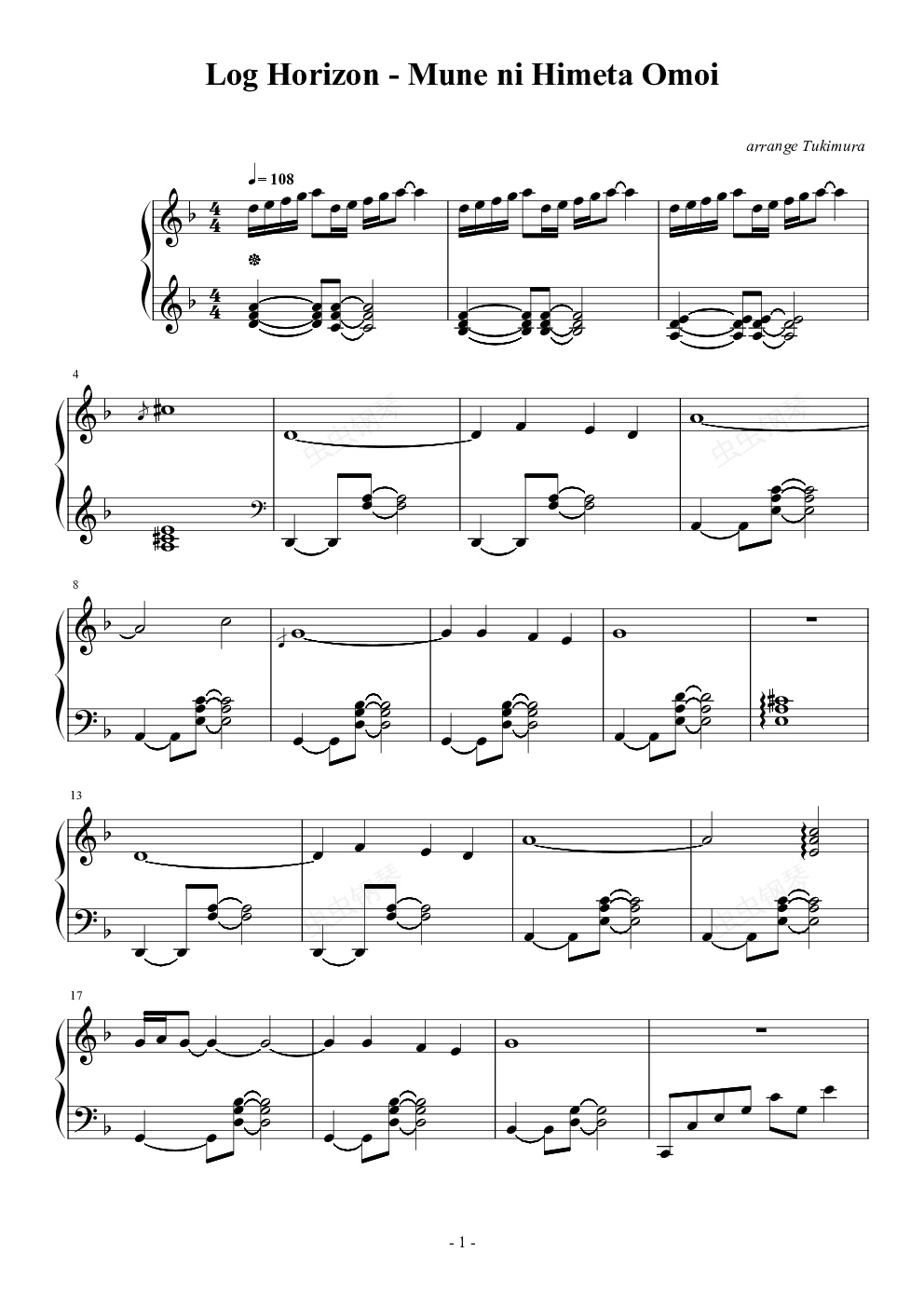 钢琴谱:Log Horizon - Mune ni Himeta Omoi