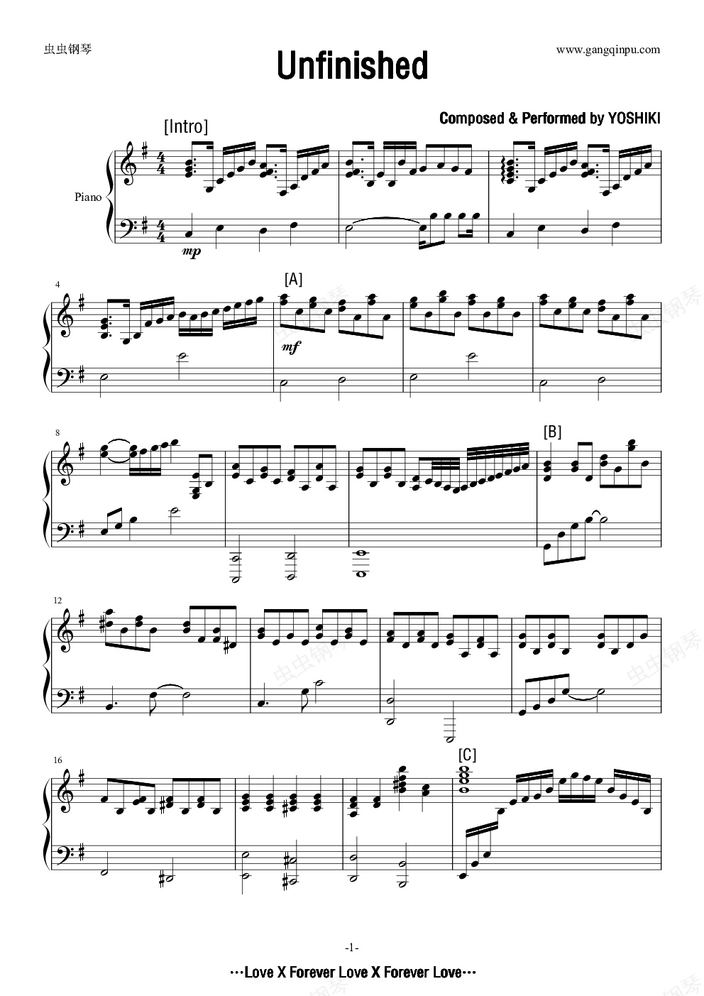 钢琴谱:Unfinished - by Yoshiki(修改重发)