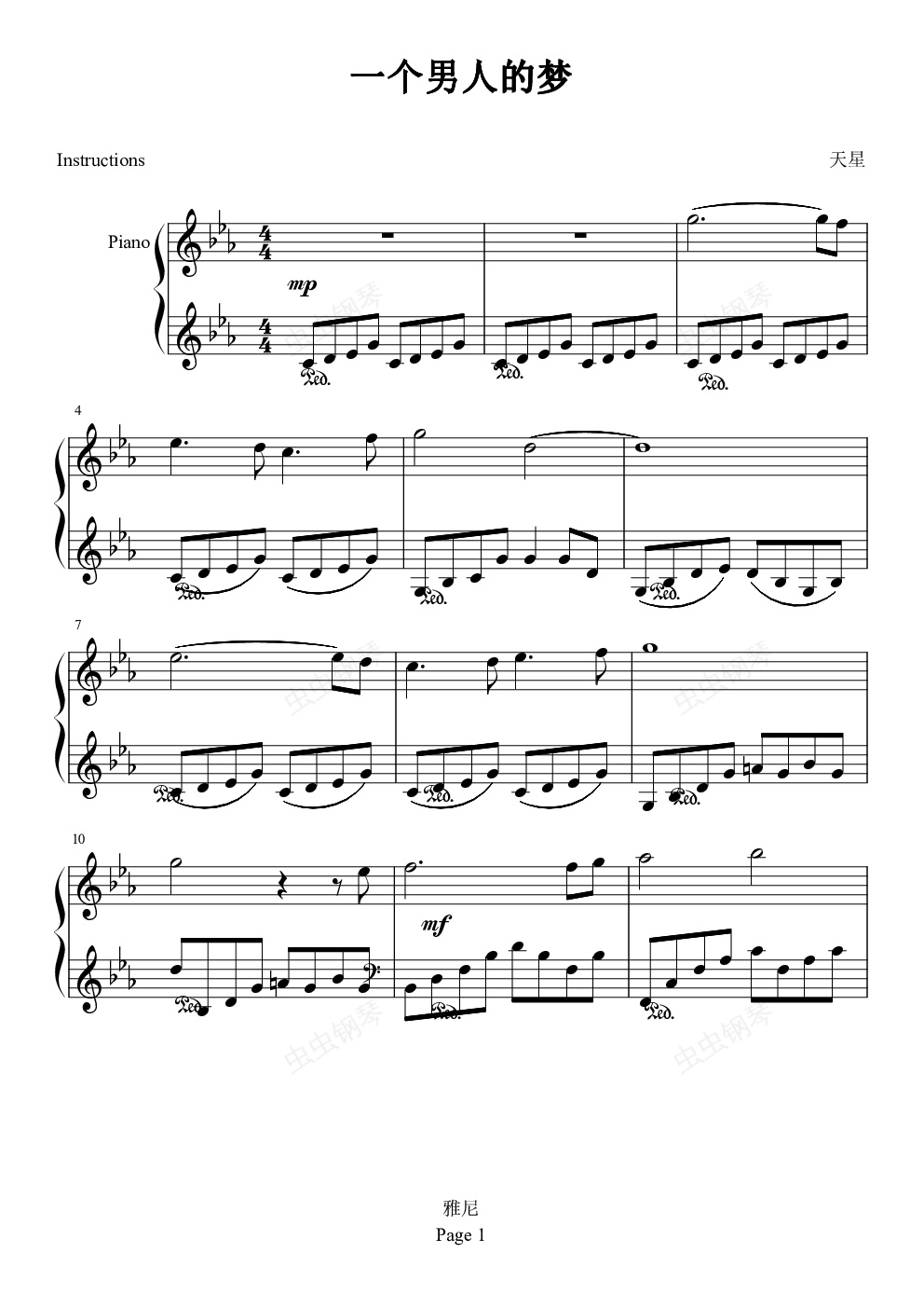 钢琴谱:一个男人的梦