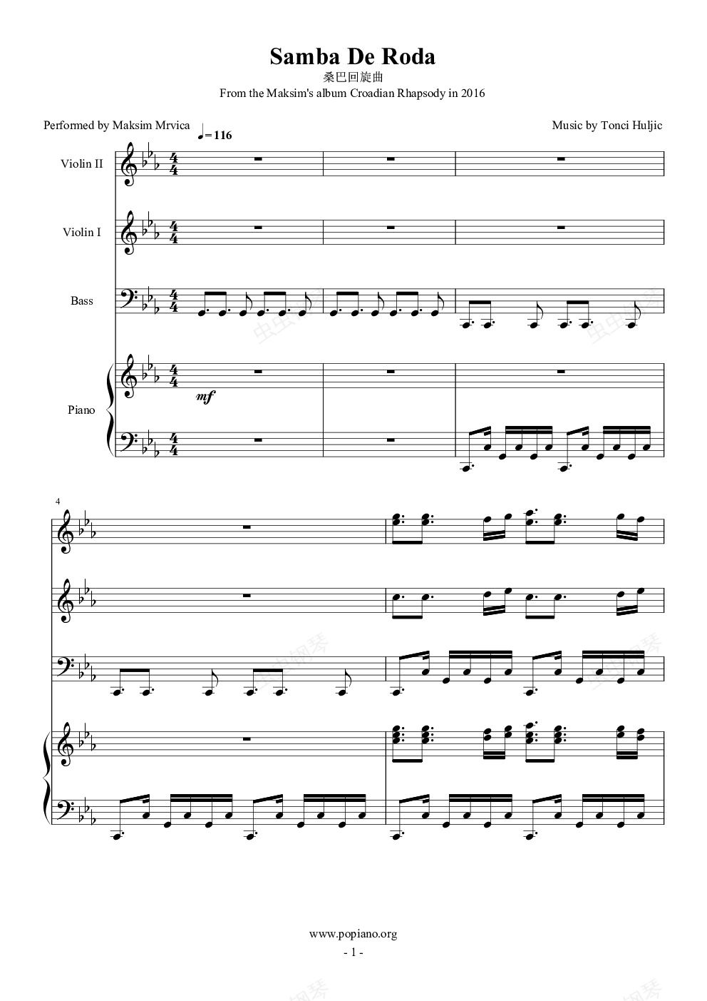钢琴谱:Samba De Roda 总谱