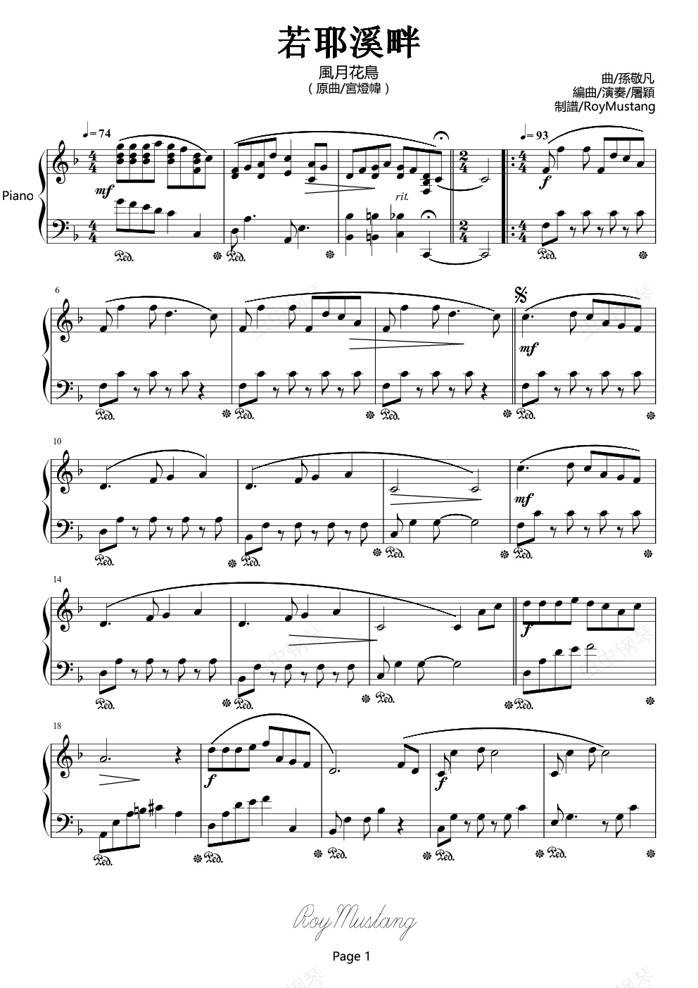钢琴谱:若耶溪畔【風月花鳥】|屠穎
