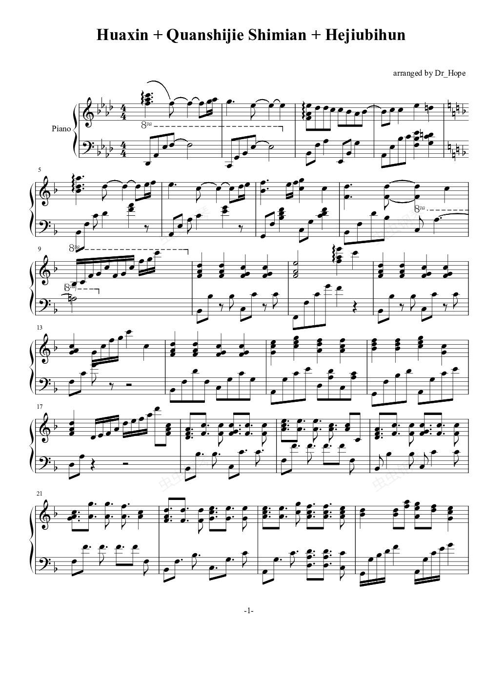 钢琴谱:画心全世界失眠合久必婚