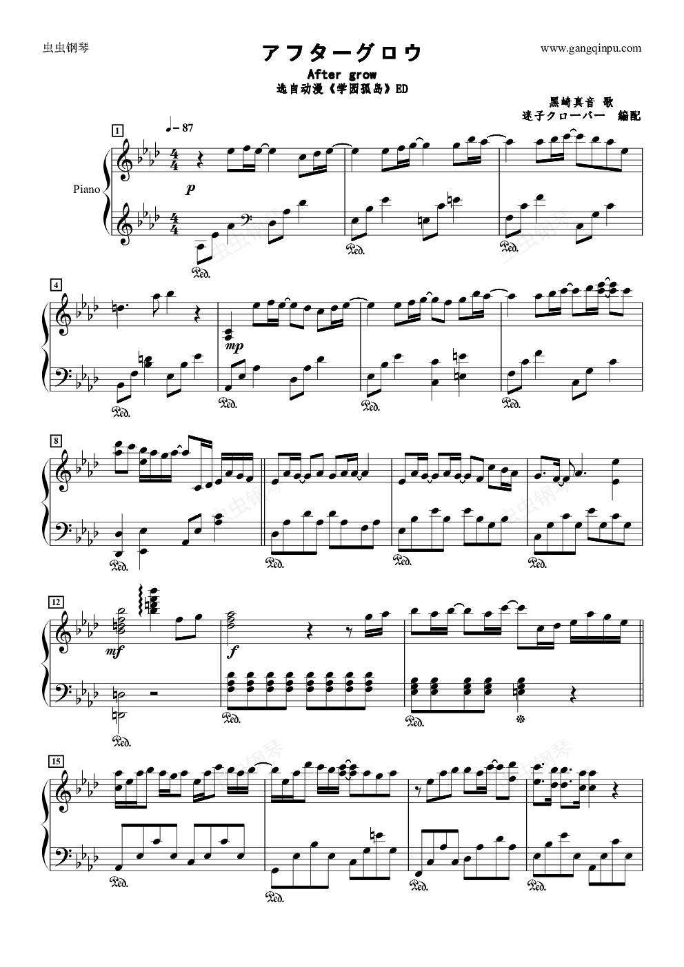 钢琴谱:アフターグロウ