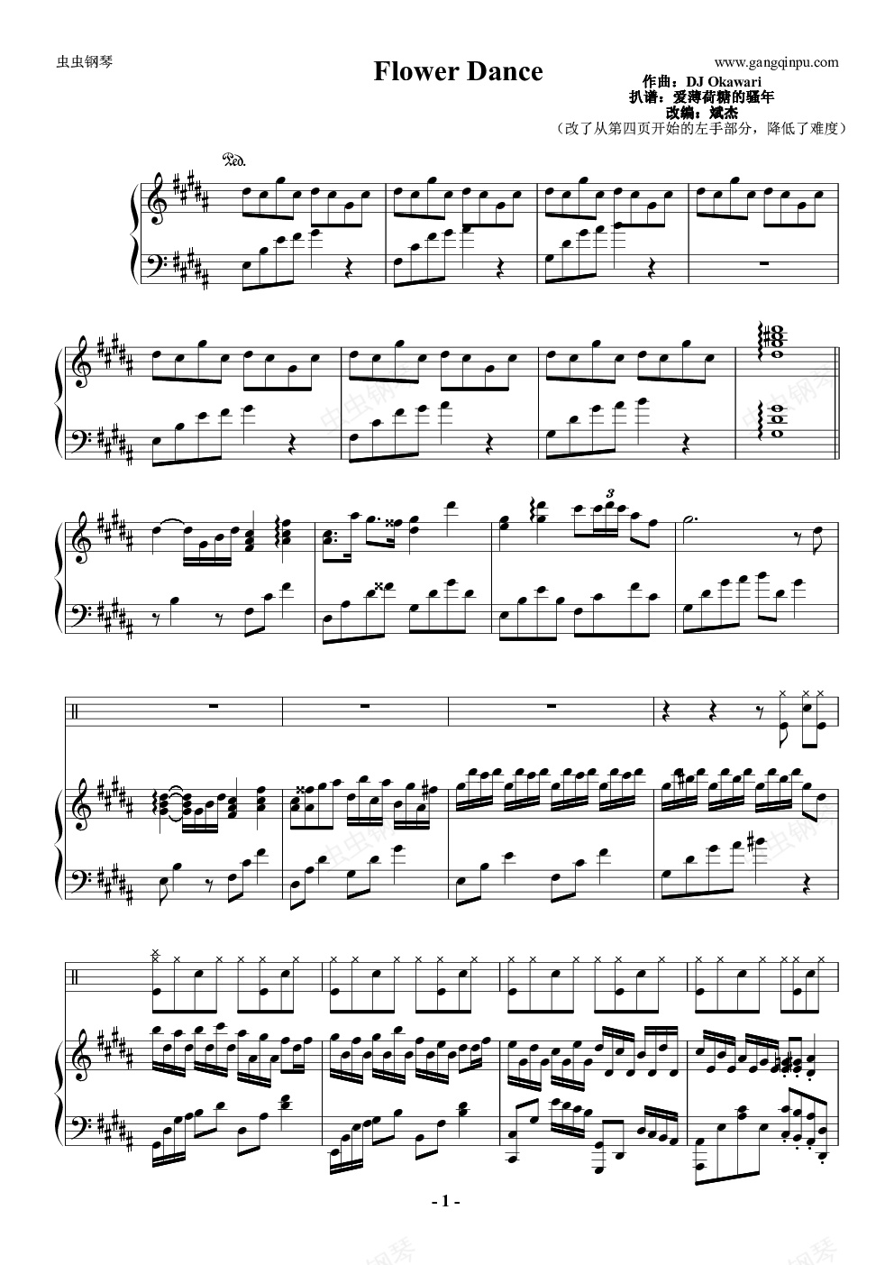 钢琴谱:flower dance(降低了后半部分左手难度)