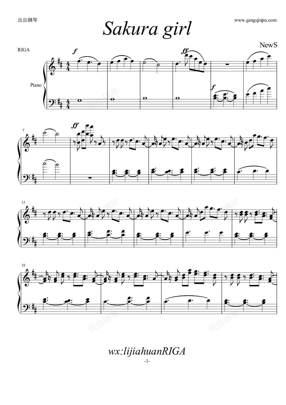 钢琴谱:SAKURA GIRL