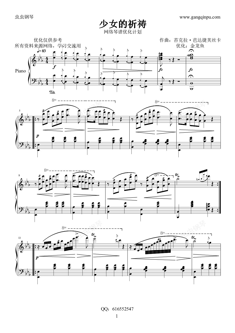 钢琴谱:少女的祈祷-金龙鱼优化版