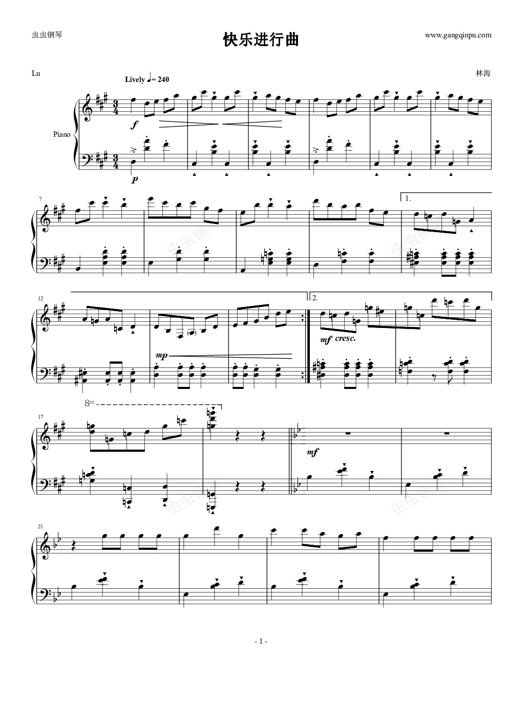 钢琴谱:快乐进行曲 - 林海