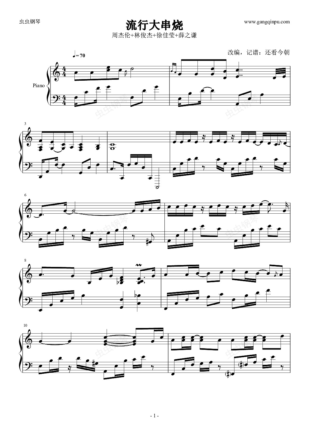 钢琴谱:热门流行大串烧